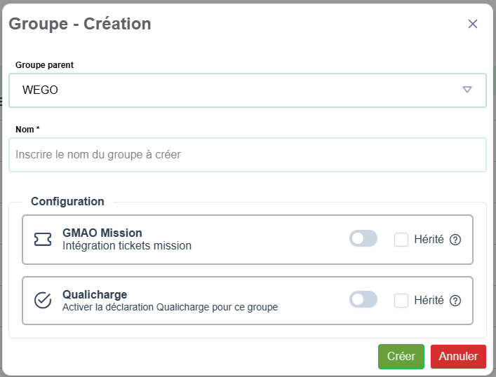 +en haut à droite du tableau pour créer un nouveau groupe au niveau le plus haut de la hiérarchie. - Créer un groupe enfant : Cliquez sur le bouton