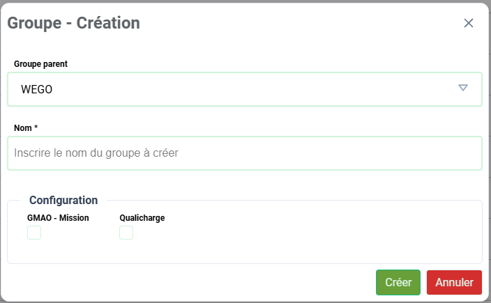 +en haut à droite du tableau pour créer un nouveau groupe au niveau le plus haut de la hiérarchie. - Créer un groupe enfant : Cliquez sur le bouton