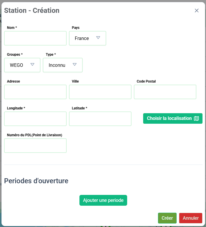 app-map-creation) qui apparaît.- Naviguez sur cette carte et cliquez à l'endroit précis où se trouve la station.
